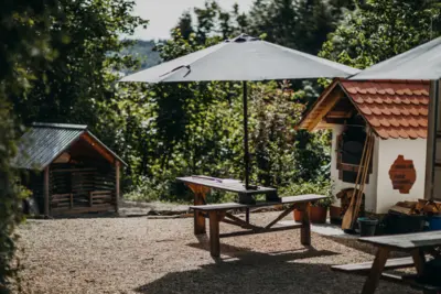 Sooft es das Wetter zulässt, halten wir uns mit den Kindern im Freien auf. Die Kinder entscheiden täglich selbst, welchen Spielplatz im Wald sie besuchen wollen. Nur bei sehr schlechtem Wetter suchen wir unseren Bauwagen bzw. unsere Schutzhütte auf. Im Winter oder bei Sturm gibt es drei Ausweichunterkünfte.