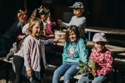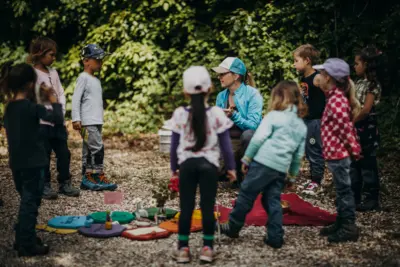 Die Kinder erleben die Natur und deren Gesetze am eigenen Leib. Sie spüren, wie die Bäume im Frühling "ihren Saft anstellen", sie erleben die verschwenderische Vielfalt des Sommers, sie baden im bunten, knisternden Herbstlaub und trotzen im Winter der Kälte. Diese Eindrücke prägen die Kinder sehr und machen sie stark: als Persönlichkeiten und verantwortungsbewusst für andere und ihre Umwelt.