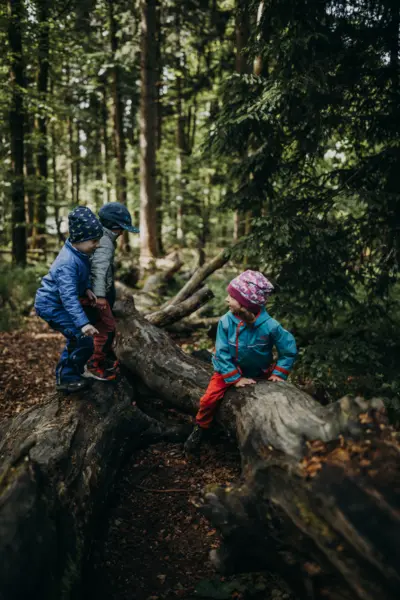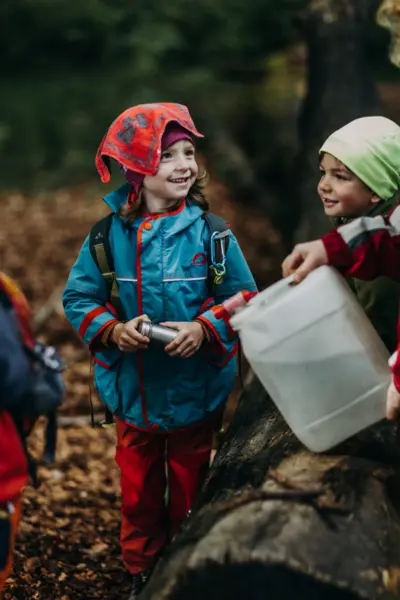 Die Kinder erleben die Natur und deren Gesetze am eigenen Leib. Sie spüren, wie die Bäume im Frühling "ihren Saft anstellen", sie erleben die verschwenderische Vielfalt des Sommers, sie baden im bunten, knisternden Herbstlaub und trotzen im Winter der Kälte. Diese Eindrücke prägen die Kinder sehr und machen sie stark: als Persönlichkeiten und verantwortungsbewusst für andere und ihre Umwelt.