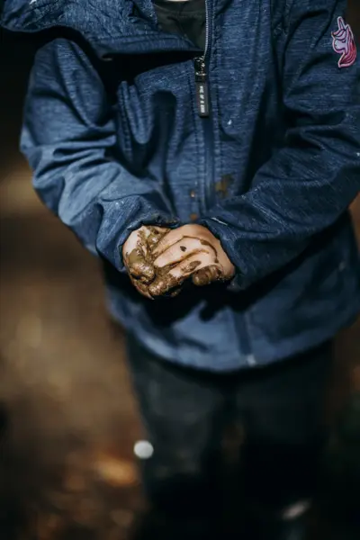 Getreu dem Motto gehen wir zunächst bei jedem Wetter mit den Kindern in den Wald. Wenn es den Kindern zu kalt wird oder die Kleidung Nässe durchlässt, wärmen wir uns in unserer Hütte oder im Bauwagen auf, beide Gruppenräume besitzen eine Gasheizung.